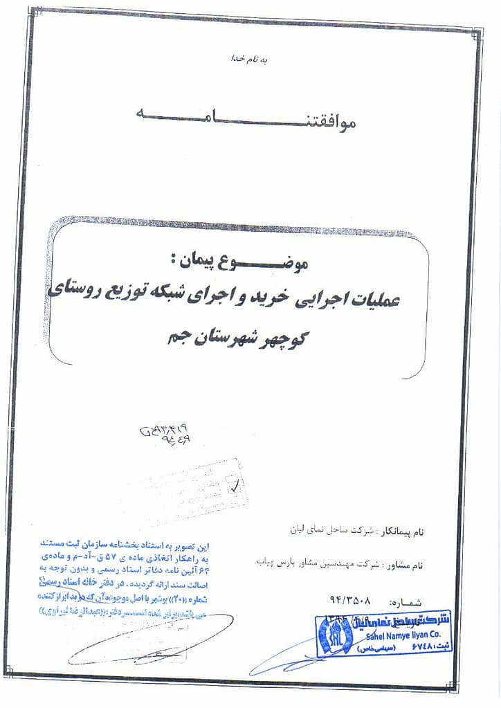 پروژه عملیات اجرایی خریدواجرای شبکه توزیع روستای کوچهر شهرستان جم